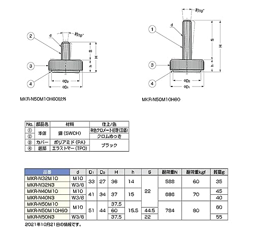 Sugatsune スガツネ工業 ランプ印 アジャスター MKR-N型 首振り機構付 MKR-N32M10