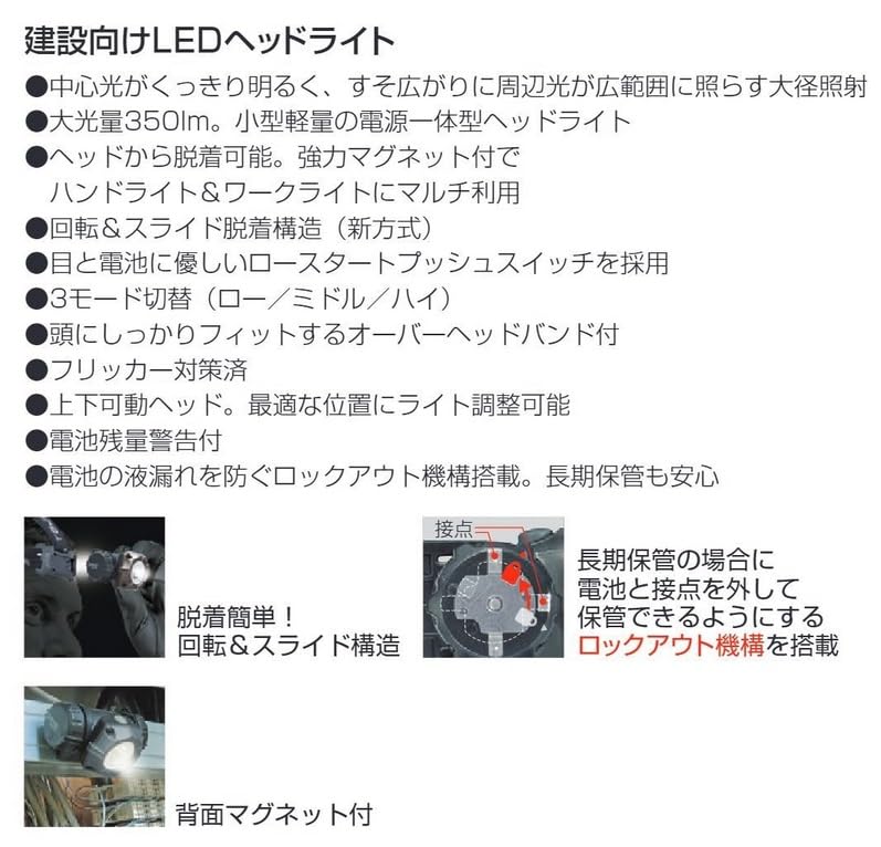 ヘッドから脱着可能。強力マグネット付でハンドライト&ワークライトにマルチ利用