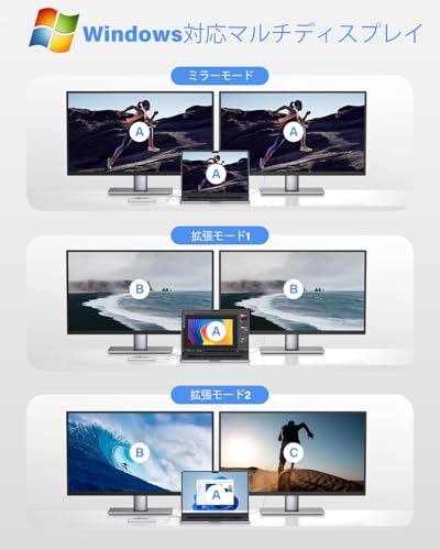 【ご注意ください】本製品はデュアルHDMI同時出力時、最大解像度は1080Pとなります。シングルHDMI出力時は4K@30Hzに対応しています。解像度が正常に出力されない場合は、ドッキングステーションおよび接続機器が適切な電源アダプターを使用しているかをご確認ください。また、HDMI 2.0以上の高品質なケーブルのご使用、モニターが4K出力に対応しているかの確認もあわせてお願いいたします。