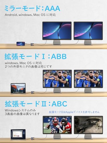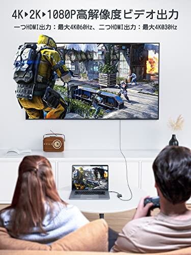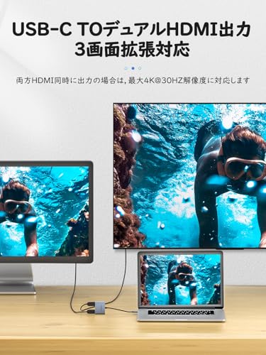 USB C デュアル HDMI 変換アダプタ ハブ 4K@60Hz 2in1 タイプC 2つhdmi 2ポート拡張 hdm iマルチディスプレイ3画面出力 Dual 2画面 MST デュアルモニター 拡張モード MacBook pro air ハブアルミ合金筐体(灰色)