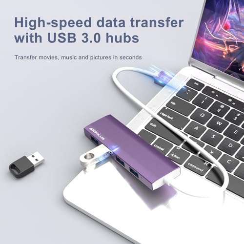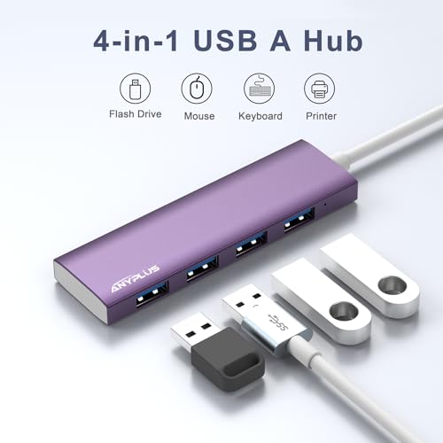ANYPUS USB ハブ、4USBポートアルミニウム合金超スリムUSB 分岐、USB Hub 5Gbps高速転送usbハブ 3.0、USB 増設Macbook/iMac Surface Pro/Mac Pro/PC/XPSなどに対応しています【パープル】