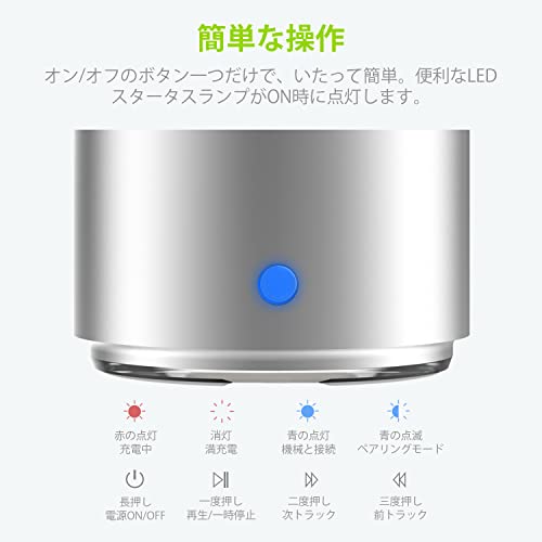 ミニマルなデザイン: 当社の目的は、いつでもどこでも持ち運びができる素敵なスピーカーを作ることでした。そのため、必要のないマイク、3.5mmジャック、不必要なボタンなどの機能をなくしました。たった一つのシリコンボタンしかありません(押し続けるとオン/オフ、タップすると一時停止、ダブルタップまたはトリプルタップで曲変更)。金属ケースとステンレススチールのメッシュで通常のスピーカー以上です。