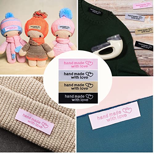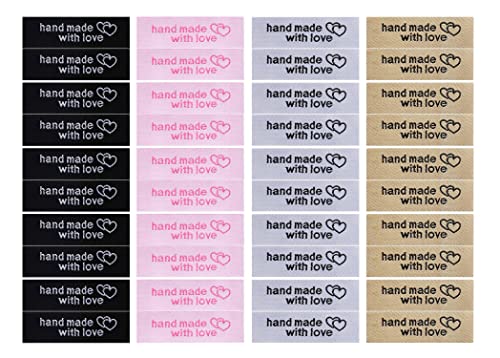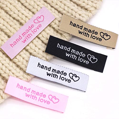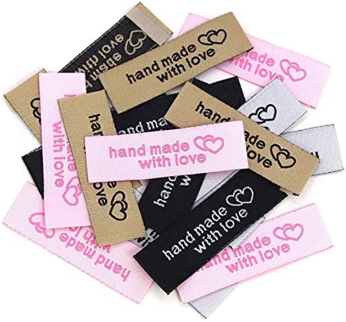 パーソナライズされた縫製ラベル、80個衣類ラベルに愛を込めて手作り、手作りアイテムの手作りインターロッキングハートパターンラベルタグ衣類衣服生地素材刺繍