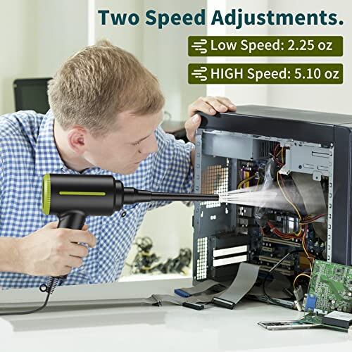 [強力なダスター]プラグアンドプレイ。引き金を締めるだけです。必要に応じて2つの速度を選択できます。エアダスターの最高速度は5.1オンスに達する可能性があります。