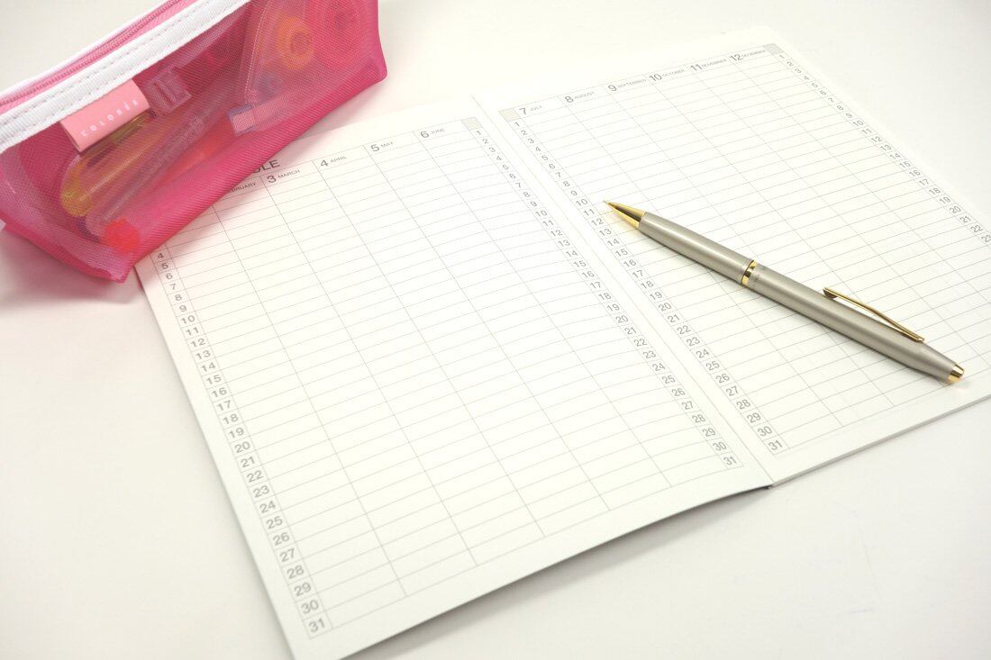 日付けが自由に書き込める/日付けを自分で書き込むフリータイプです。時期を選ばずいつからでも使用できます。