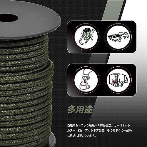 Abma Cord ショックコード バンジーコード 4mm 弾性 ゴム紐 ゴムロープ ストレッチコード 荷物固定 軽トラック ターポリン カーゴネット クラフト DIY用など(20M)-アーミーグリーン