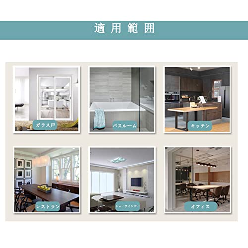 【適用場所】:PVC材質なので、耐久性、防水性と防カビ性が抜群、変色が起こりにくく、長年にわたって使用できます。ガラス表面が滑らかであれば、浴室、一般の窓、引き戸、テーブル、水槽などに全て適用します。また、カットも組合せも可能なので、どんなサイズのガラスにも合わせやすいです。複層ガラス、網入りガラス等の特殊ガラスは。