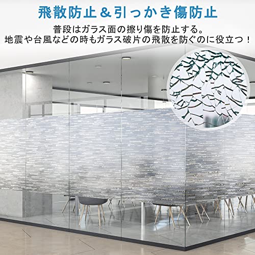 飛散防止・引っかき傷防止:普段はガラス面の擦り傷を防止できます。地震や台風などの時はガラス破片の飛散による二次災害の発生を防ぐのに役立ちます。ご注意:静電力で吸着するので、表面が凸凹したら、粘着力がかなり落ちます。