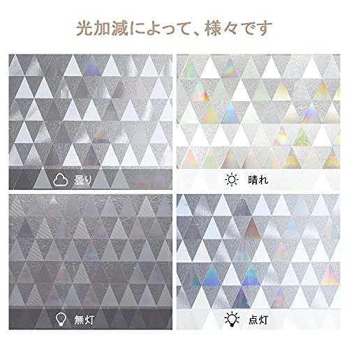 美しい窓飾りシート:光が照射されなくても、自然な光でキラキラします。光が当たると、虹の色が付き、輝いて虹が部屋に映ってキレイです。光が強ければ強いほどカラフルになり、単調なところに魅力を放たせます。また、フリーカットなので、窓にピッタリ貼れます。