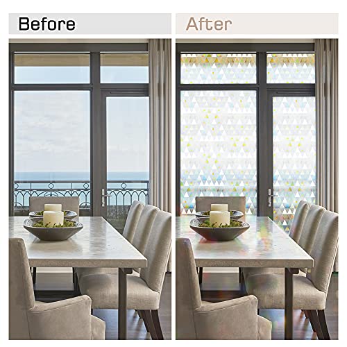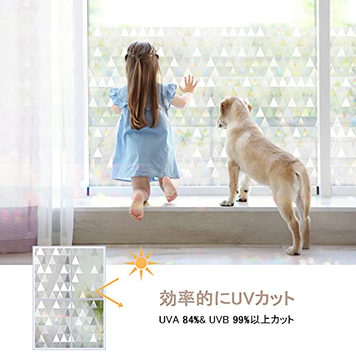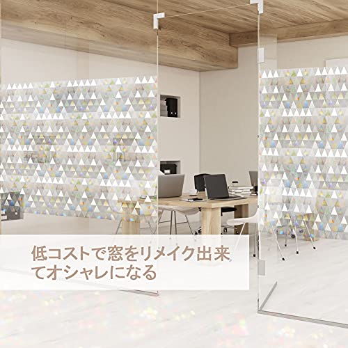 Rabbitgoo ステンドグラス シール 窓ガラス 目隠しシート 窓用フィルム 水だけで貼る 何度も貼り直し可 窓ガラスフィルム uvカット 飛散防止 リメイク おしゃれ 三角パターン 44.5x200cm