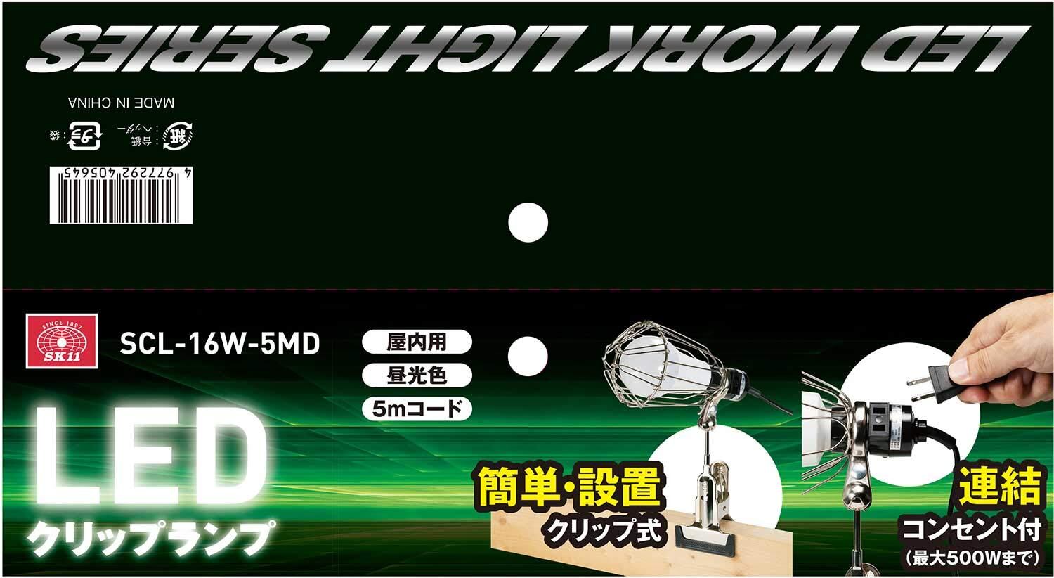 SK11(エスケー11) LEDクリップランプ 16W 昼光色 SCL-16W-5MD 作業用・大工用・アウトドア用