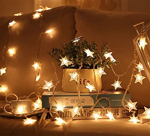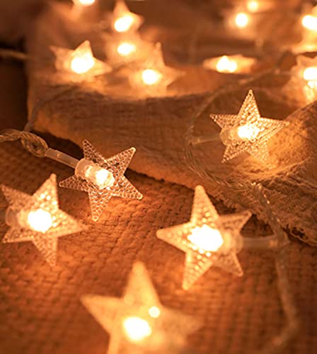 BQuel イルミネーションライト LED ストリングスライト 40星 6m 点滅 点灯 電池式 防水防塵仕様 フェアリーライト 調光可能 ガーデンライト 屋内・屋外兼用 LED クリスマス装飾 飾り星 ジュエリーライト ハロウィン ウォームライト