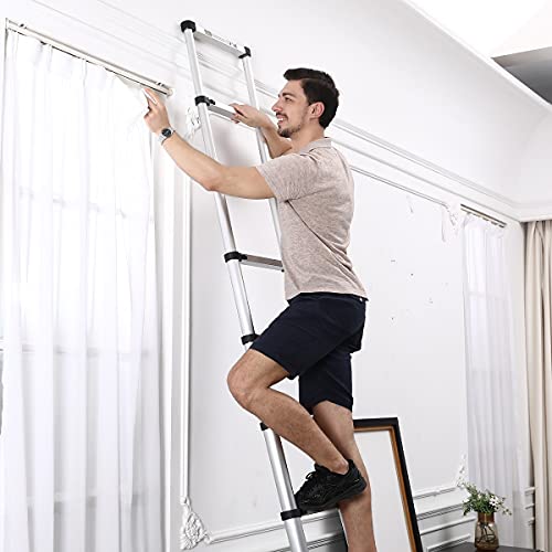 RIKADE 伸縮はしご 耐荷重150kg 軽量 持ち運びやすい 折り畳み 伸縮梯子 多機能アルミはしご 自動ロック スライド式 伸縮自在 梯子 室内室外両用 スライド式 (シルバー, 2.6m)