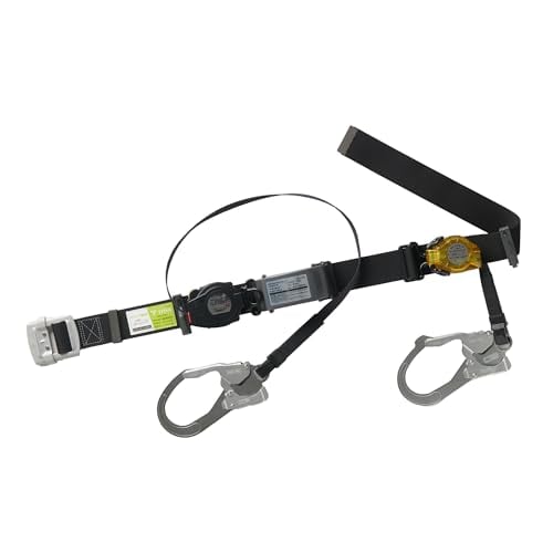 【墜落制止用】巻取器:樹脂製ケース、ストラップ:幅17mm アラミド芯入りテトロン、長さ:約1,650mm、第一種ショックアブソーバ付き、フック:No.56A(軽量タイプ) 【補助ロープ】巻取器:樹脂製ケース(イエロー)、ストラップ:幅17mm アラミド芯入りテトロン、長さ:約1,150mm(ストラップ収納時 約420mm)、フック:No.56H(U字つり防止コブ付き)