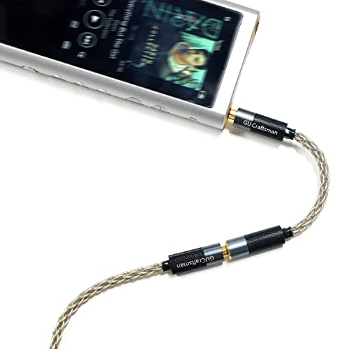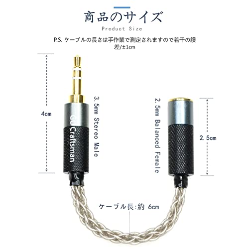 GUCraftsman 3.5mm三極ステレオ(オス)変換2.5mm四極バランス(メス)ポータブルイヤホンアダプター 6N単結晶銀ケーブル