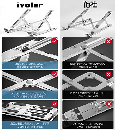 ノートパソコン スタンド PCスタンド改良 折りたたみ式 パソコンスタンド ノートパソコンスタンド iVoler タブレット スタンド ラップトップスタンド pc スタンド 持ち運び アルミ合金製 6段階高さ調節可能 滑り止め 軽量 PC/MacBook/ラップトップ/iPad/タブレット (金属) ノートpc
