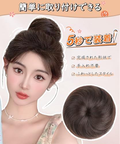 【使用場合】: 幅広い世代に人気のウイッグで、様々なシーンで使用できます。着物や浴衣で和装ウィッグに、入学式、卒業式、発表会などの、キレイめアップスタイルにもオススメのお団子ウィッグです。巧みなデザイン、簡単に付け、短い髪も適用 ご自宅で手軽にエレガントなシニヨンアレンジがお楽しみ頂けます。