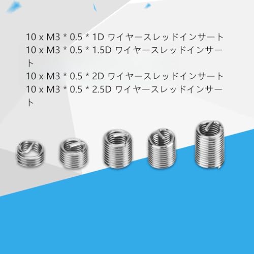 Hilitand ネジ穴補修キット M3 ねじインサート用 挿入工具 インサートセット ステンレス (M3×0.5×1-3D,50点セット)