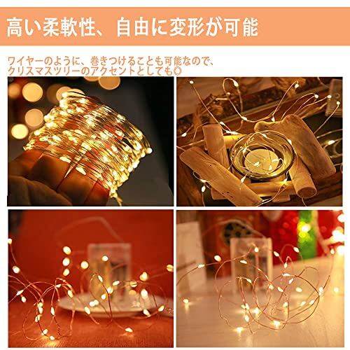 ☀【安全な絶縁デザイン&高い柔軟性】好きな形に曲げられる、ワイヤータイプのイルミネーションライト。立体的なオブジェを作ったり、壁を飾ったりとアイデア次第でさまざまな活用ができるのが魅力です。銅線部分は耐久性に優れているため、折り曲げても壊れにくく取り扱いやすいです。ワイヤーが細くてやわらかいので、好きな形にアレンジするのも楽ちんです。