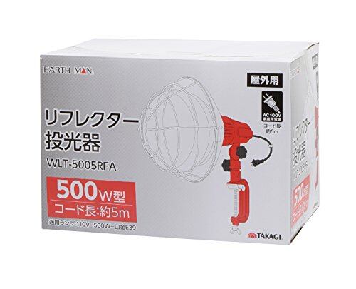 髙儀(Takagi) EARTH MAN リフレクター投光器 500W型 5mコード330×220×490mm 屋外用 AC100V家庭用電源 暗い所での作業 WLT-5005RFA