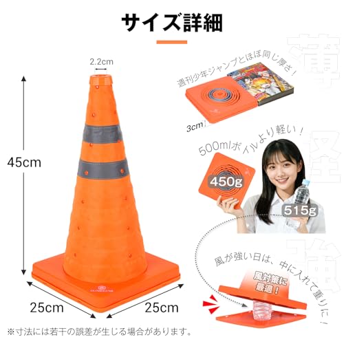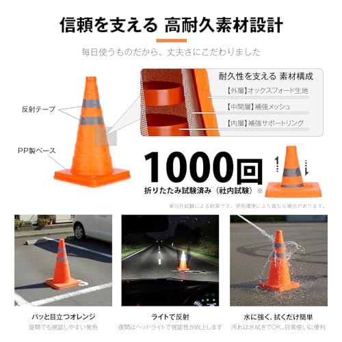 ✅【反射率の高い視認性】反射コーン本体色は日中の視認性に優れる蛍光オレンジ色。反射テープ付なので、を問わずどの角度からでも表示されます、夜間の視認性も確保できます、緊急停車時などの使用も可能