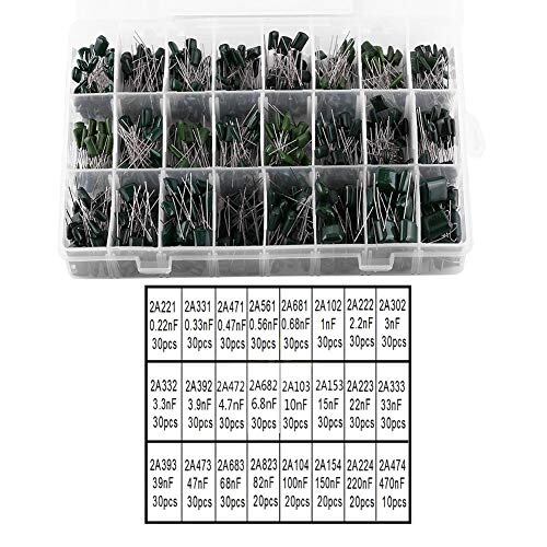 24種類のコンデンサ:トランジスタ、このセットには、基本的なニーズを満たすことができる合計24の値を持つ合計660個のコンデンサが含まれています。 2A221、2A331、2A471、2A561、2A681、2A102、2A222、2A302、2A332、2A392、2A472、2A682、2A103などが含まれます