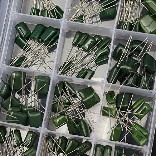 WINGONEER 150PCS 15値(各10個)100V 0.33NF-470NFポリエステルフィルムコンデンサキット+プラスチックボックス