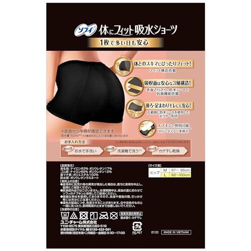 ソフィ 体にフィット吸水ショーツ ボクサータイプ 多い日用 ブラック Lサイズ 1枚入