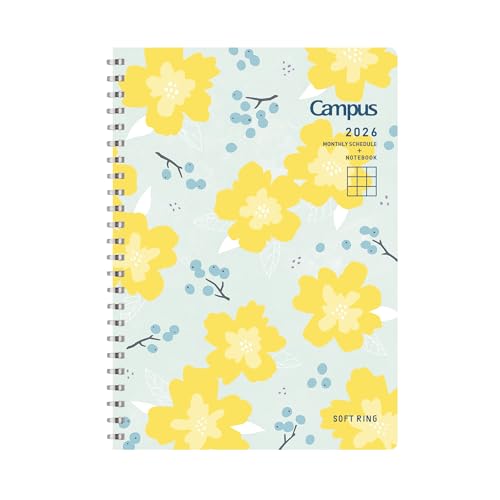コクヨ 手帳 2026 キャンパス ソフトリング ダイアリー マンスリー ブロック A5 フラワー柄 ニ-SMNL1-A5-26 2025年 12月始まり