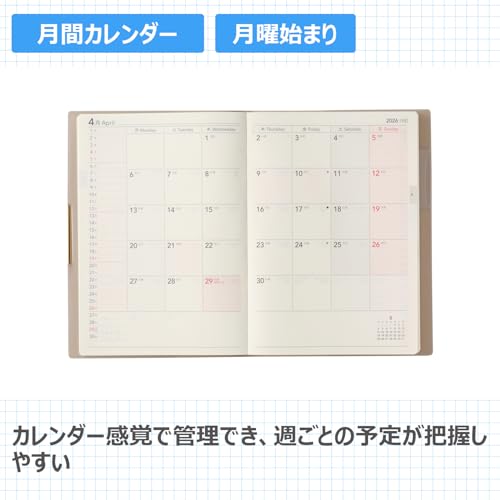 能率 NOLTY 手帳 2026年 4月始まり B6 ウィークリー エクリPlus 2 ベージュ 9863