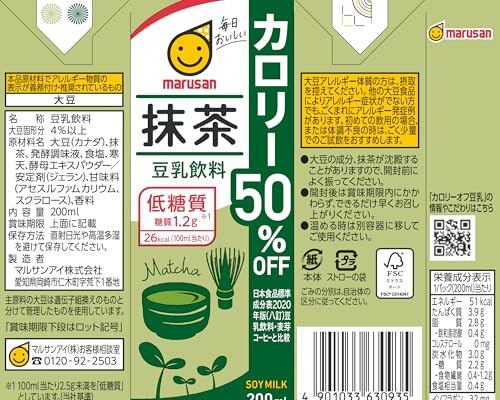 マルサン 豆乳飲料抹茶カロリー50%オフ 200ml×24本