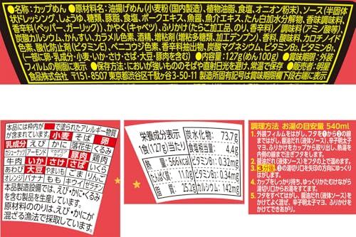●食欲そそるバターの香りと豚と魚介の旨みがきいた濃厚醤油だれに、ピリッと辛い辛子明太子マヨで仕上げる、濃厚な味わいとあと引く旨さでやめられない明太子味焼そば。 ●麺:オニオンをねり込んだ、コクと旨みがある麺。 ●ソース:ポークエキスに魚醤、魚介エキスの旨みを加え食欲そそるバターの香りをきかせた醤油だれ。 ●マヨネーズ:辛子明太子マヨ。 ●具材:キャベツ。 ふりかけ:明太子風味顆粒、刻みのり、唐辛子粉末。