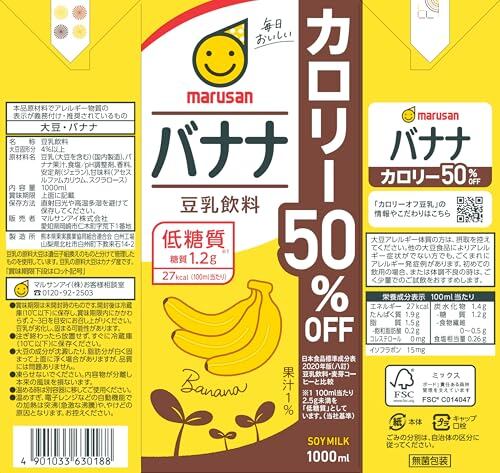 マルサン 豆乳飲料バナナ カロリー50%オフ 1L×6本