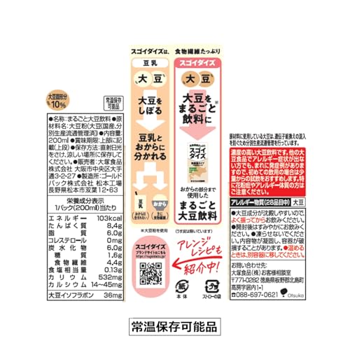 スゴイダイズ 大塚食品 無調整タイプ 200ml×24本 常温保存可能 まるごと大豆飲料