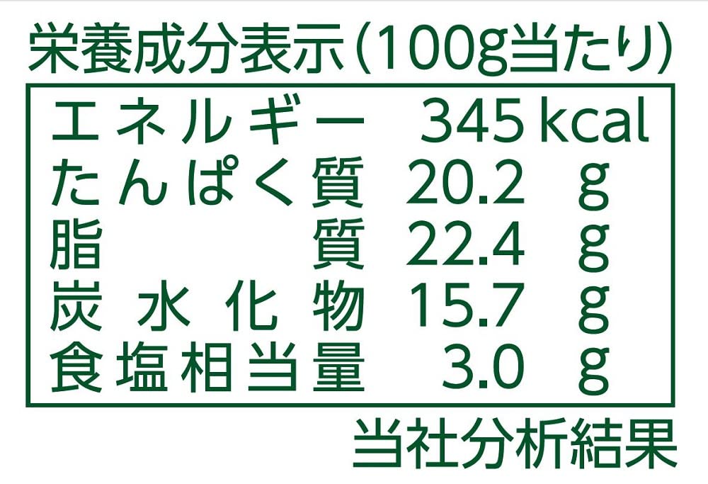 原材料:ナチュラルチーズ(国内製造・外国製造)、魚肉すり身、植物性たん白(小麦・大豆を含む)、植物油、食塩/加工でん粉、ソルビトール、乳化剤、調味料(アミノ酸)