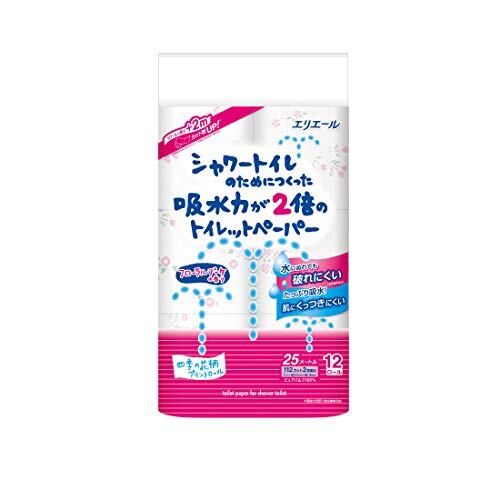 エリエール トイレットペーパー シャワートイレのためにつくった吸水力が2倍のトイレットペーパー 25m×12ロール ダブル パルプ100% フローラルブーケの香り