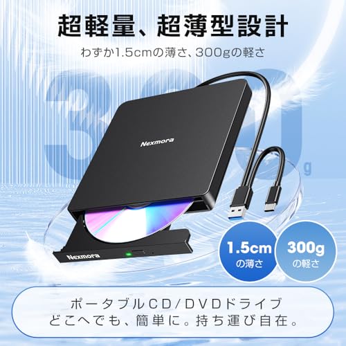 【2026新定番・高速読取×低騒音】 cd dvdドライブ 外付け dvd ドライブ 外付け cdドライブ 光学ドライブ USB-A & type-c 両対応 読み込み 書き込み可能 取り込み 低騒音 薄型 パソコン PC mac windows11対応 M-DISC対応 多様ディスク対応( CD-ROM CD-R DVD-R ..など)TV/車/ブルーレイ非対応