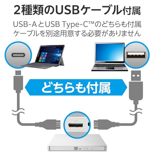 ロジテック ポータブルDVDドライブ USB3.2 (Gen1) 書き込みソフト付 Type-A Type-C ホワイト LDR-PWA8U3CLWH