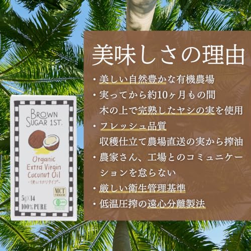 有機JASオーガニックエキストラバージンココナッツオイル(ポーションタイプ)×14袋 環境にやさしい紙容器にリニューアル (有機 化学調味料無添加 砂糖不使用 100% 天然 非加熱 中鎖脂肪酸 ブラウンシュガーファースト)