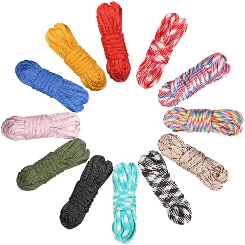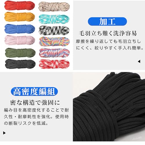 JUJUGO 7芯パラコード 3m 4mm径 12本セット タープロープ ガイライン テントロープ キャンプ アウトドア用 多機能ブ 多目的ロープ DIYクラフトに最適 園芸用