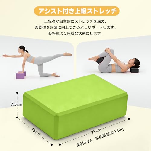 AYO ヨガブロック 2個セット 軽量 ストレッチブロック 撥水 高密度/硬いEVA 防湿性 ヨガグッズ 初心者 23x15cm 厚さ7.5cm(約180 x2) パープル