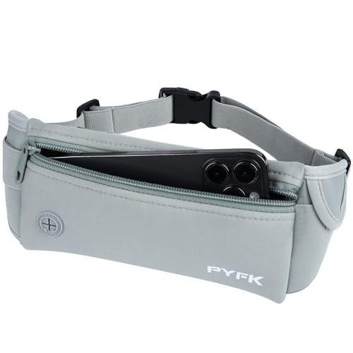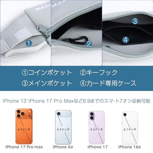 PYFK ランニングポーチ 軽量 防水 揺れない ウエストポーチ iPhone スマホ対応 ランニング ポーチ 薄型 おしゃれ メンズ レディース (モランディグレー)