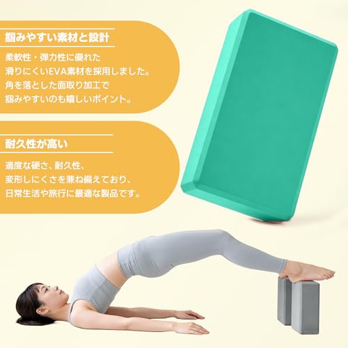 【初心者も安心の安定感】このヨガブロックは、適度なクッション性と滑りにくい表面でポーズをしっかりサポート。初心者でもバランスを取りやすく、安全にヨガを楽しめます。