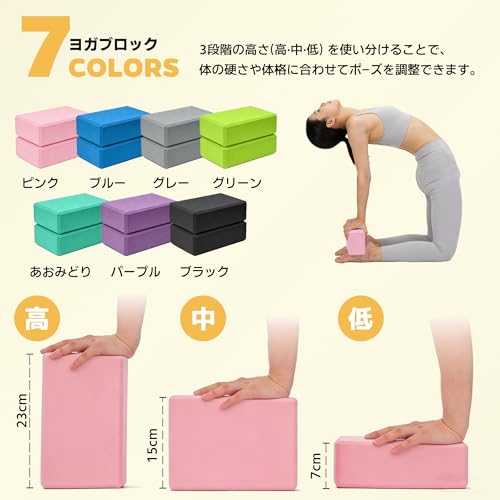 【高さ調整可能】ヨガブロックとして縦・横・平置きの3通りの使い分けが可能。23×15×7.5cmのコンパクト設計で、ポーズに応じて最適な高さを簡単に設定できます。