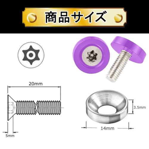 車用 ナンバープレート 盗難防止ボルト ナンバーフレーム セキュリティ ネジ M6 (パープル)