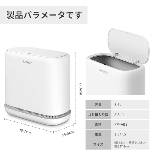 JUDRDO ゴミ箱 ふた付き 8L スリム 吸着式 消臭 ペット対策 省スペース 薄型 キッチン トイレ 洗面所 寝室 オフィス 用 ゴミ袋20枚付き 白 (小)