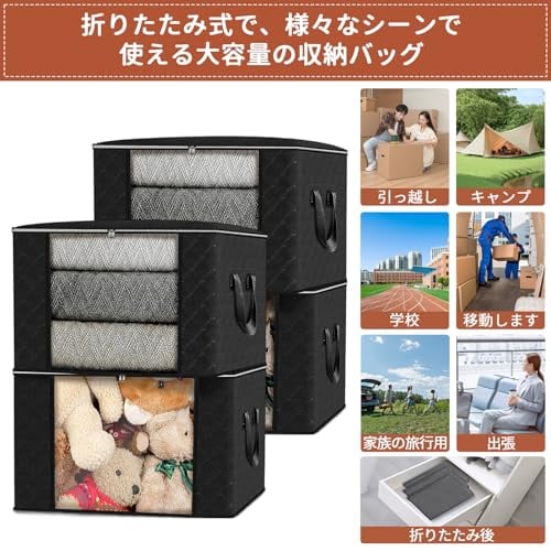 【優れた衣装ケース&耐久性抜群】布団収納袋 は不織布素材を使用しているため、ホコリなどの汚れから守り、汚れも簡単に拭き取ることができます。衣類収納ケースは高い通気性で、湿気やカビの発生を防ぎます。さらに、耐久性のある両方向ジッパーを備え、長期間使用しても壊れにくいです。布団収納袋は透明窓が付いているため、欲しい物がすぐに見つかります。