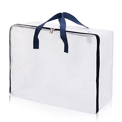 YOSTORYA 布団収納袋 ふとん 収納袋 大容量 (XXL-1個セット)布団袋 引っ越し ぬいぐるみ 衣類 洋服 収納ボックス 収納ケース ダークブルー 持ち手とファスナー付き 强荷重:50KG 透明 押入れ収納袋 70x50x30cm