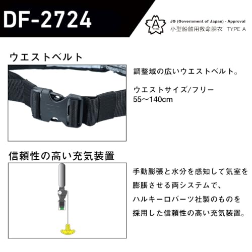 ダイワ(DAIWA) 腰巻自動・手動膨張式ライフジャケット DF-2724 ブラック フリー (2024年モデル)
