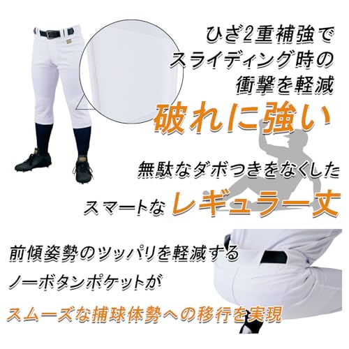 [ゼット] ウェア ウエア ユニフォームパンツ ズボン レギュラーパンツ 野球 ユニフォームパンツ ズボン ヒザ ホワイト S